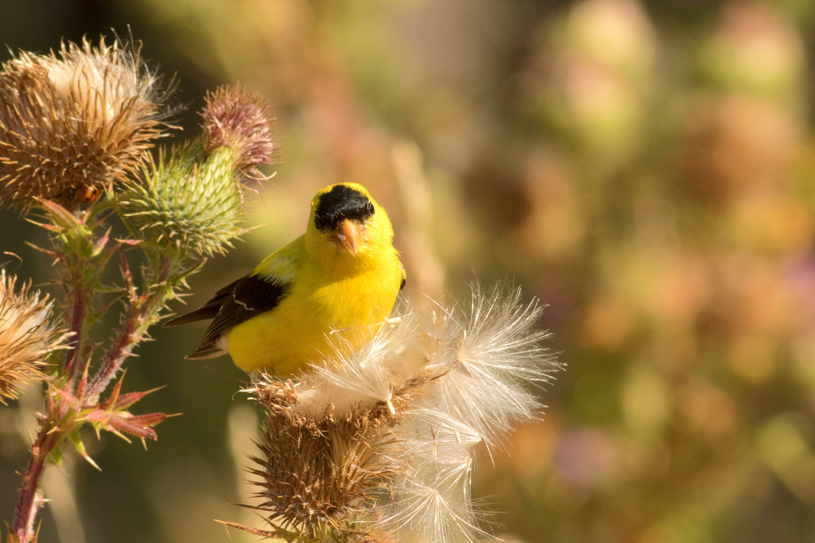Even with lots of time and patience it can be tricky to photograph a Wilson's warbler, Writing on Stone PP.