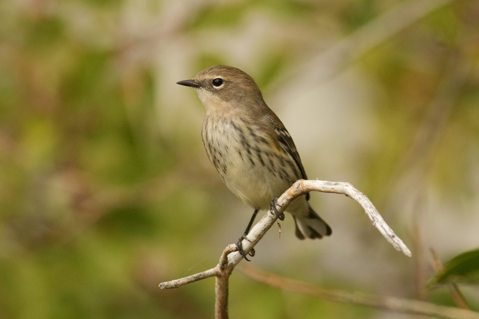 Blackpoll warblers look different in the fall but the eye markings and double wing bars are distinctive, Medicine Hat.